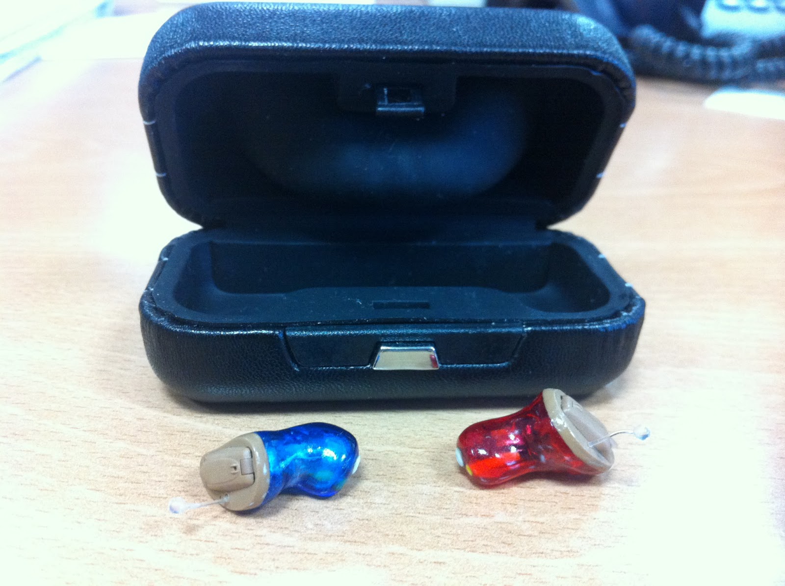 Os ditos aparelhos, um azul e um vermelho para não me enganar no ouvido!