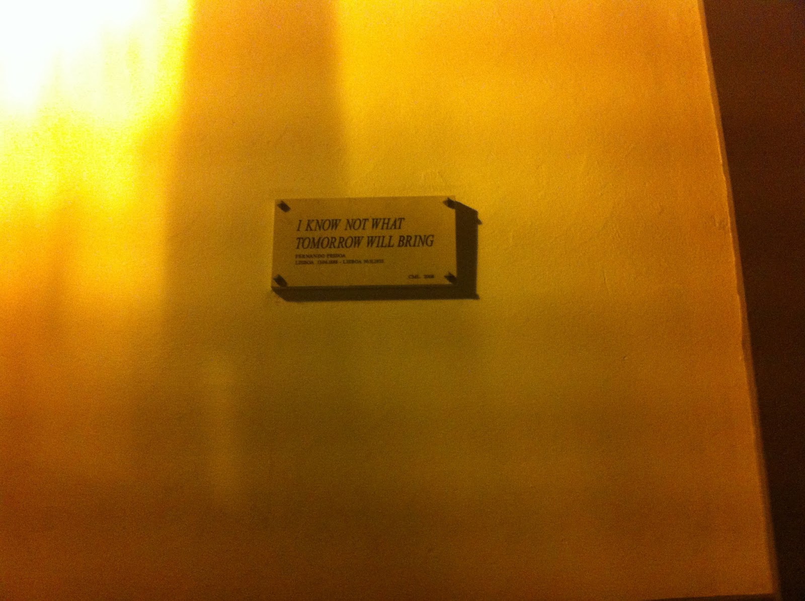 Depois na quinta, um gajo cansado como estava, foi dormir até às 16h. Acordar, tomar um banho, almanchar (é tipo um almoço alancharado), vestir o equipamento de corrida, e ir até à Baixa para participar no Treino Temático em homenagem a Fernando Pessoa. Basicamente, eu e mais cerca de 70 pessoas, andámos a correr por Lisboa, passando por pontos estratégicos da vida de Fernando Pessoa, sendo que em cada um desses pontos, estava um gajo a explicar tudo como manda a sapatilha. Foi um final de tarde bastante interessante, que aliou desporto a cultura. Foram 15kms e mais de 2h entre corrida e parragens.